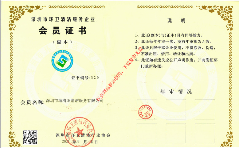 環(huán)衛(wèi)清潔協(xié)會(huì)證書(shū)副本(2022)