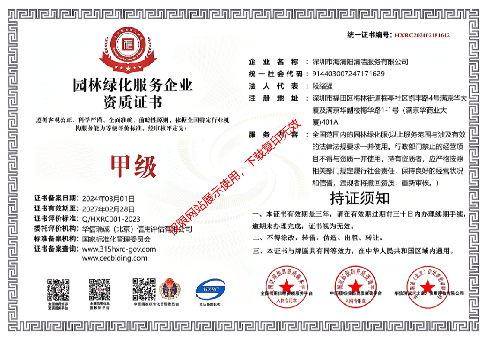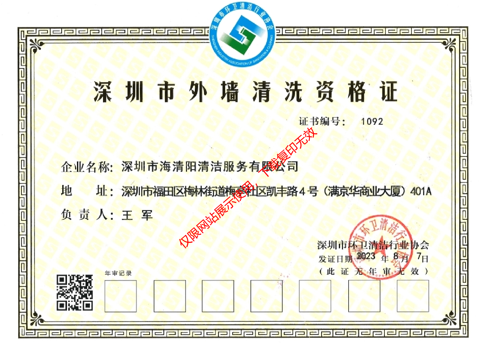 深圳市外墻清洗資格等級(jí)證書(shū)